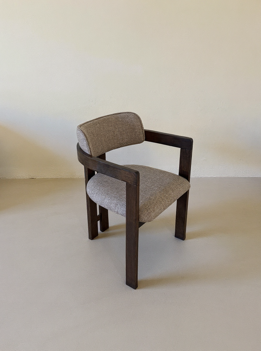 Was diesen Stuhl besonders macht, ist die Möglichkeit, ihn nach Ihren Wünschen zu gestalten. Entscheiden Sie sich für luxuriöses Leder, das mit der Zeit noch schöner wird, oder für einen weichen, komfortablen Stoffbezug wie Bouclé oder Leinen – jede Wahl verleiht dem Stuhl eine individuelle Note. Dieser Stuhl lädt dazu ein, länger zu verweilen – sei es für ein schnelles Frühstück oder ein gemütliches Abendessen mit Freunden.